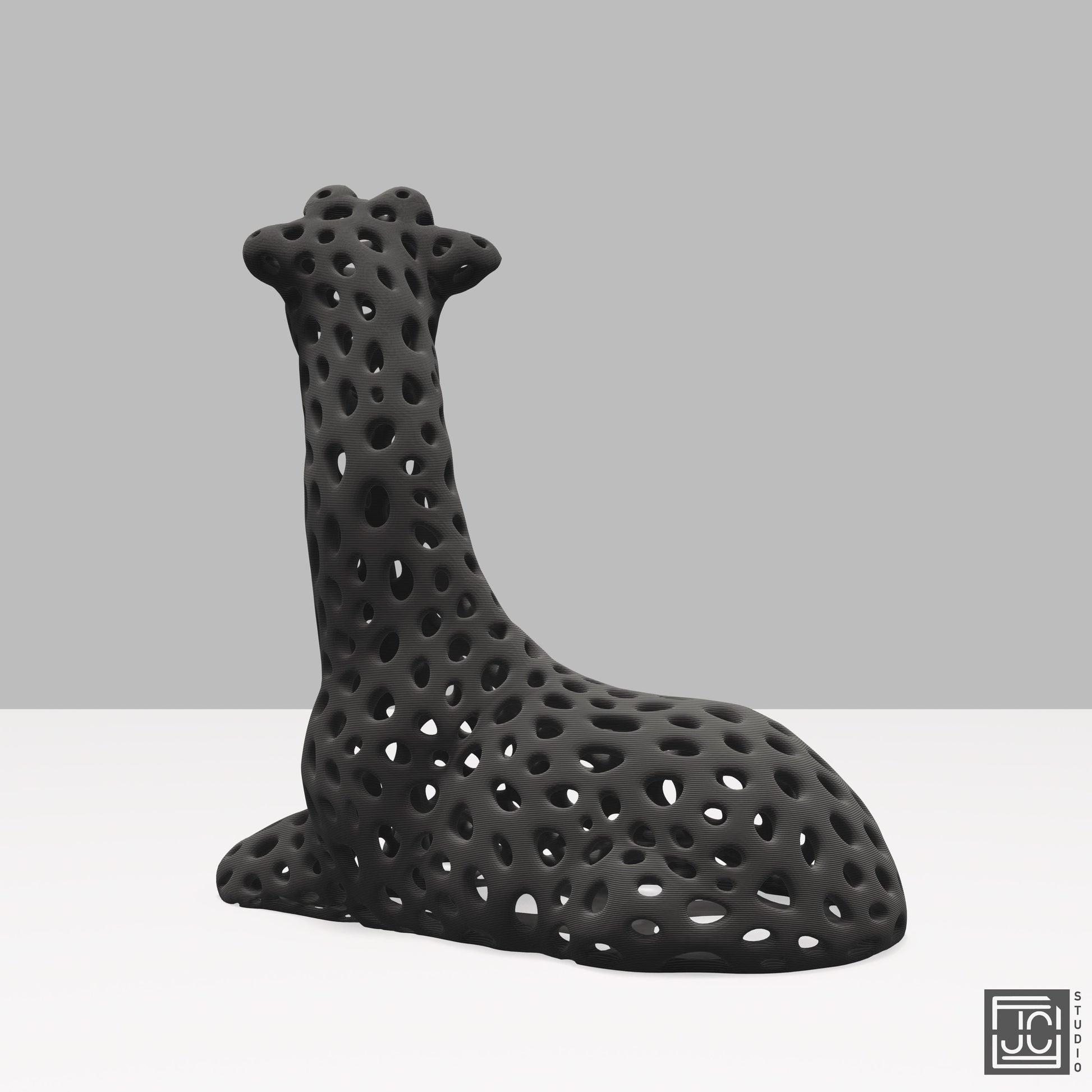Celebrate the beauty of math and wildlife with this unique giraffe figurine featuring a striking Voronoi pattern. This 3D printed model is perfect for desks, shelves, or as a conversation starter. Available in lots of different colors! Default size is 3.2 inches tall. Ask us about custom sizing!
